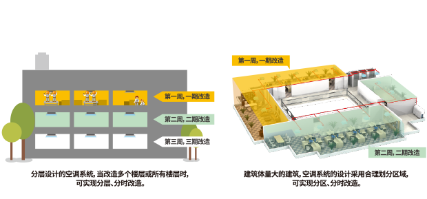 系統(tǒng)更新可采用分期、分層、分區(qū)、分時(shí)的方式靈活進(jìn)行,既不影響建筑中其他業(yè)主的正常功能使用,也可根據(jù)需求保證正在更新改造的業(yè)主在工作日內(nèi)正常工作,使得系統(tǒng)的整體施工影響降至更低。同時(shí),分期施工,則可分期投入,用戶不需要一次性投入全部改造費(fèi)用,將資金壓力減至更低。