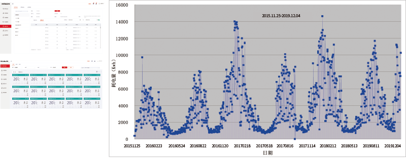 圖示為應用了二代日立電費分戶計量的某工程在使用了3年多的時間里耗電量實時記錄數(shù)據(jù)圖表,通過對耗電量的長期跟蹤和分析,變頻多聯(lián)機系統(tǒng)較傳統(tǒng)中央空調系統(tǒng)有銘心啊的節(jié)能效果??照{系統(tǒng)的節(jié)能不僅要在產品本身上力求改進,引入科學公平合理的空調計費方法、調動個人的節(jié)能意識也非常關鍵。日立多聯(lián)機分戶計量系統(tǒng)能輕松地實現(xiàn)合理的空調計費,引導人們的行為節(jié)能!