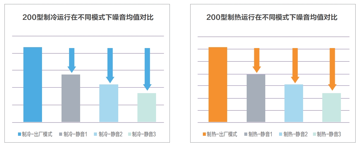 獨立的制冷、制熱靜音模式設(shè)定,多種降噪模式可靈活適應(yīng)不同安裝條件,最多可降低5dB(A)。