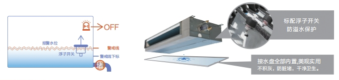 內(nèi)置接水盤,標(biāo)配浮子開關(guān),排水更安全。
