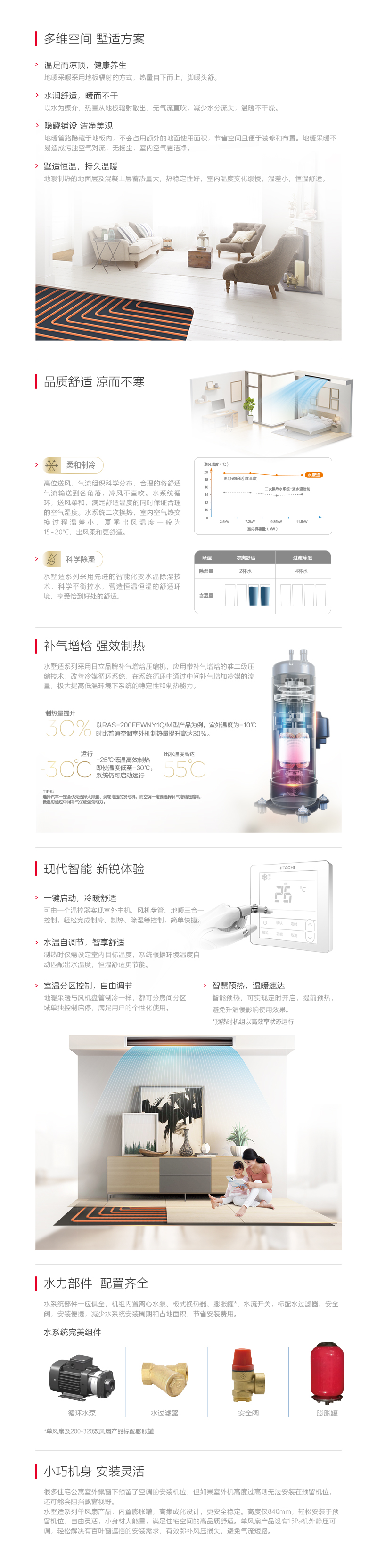 制冷、制熱、除濕、送風(fēng)、地暖、制熱+地暖多種模式可調(diào)