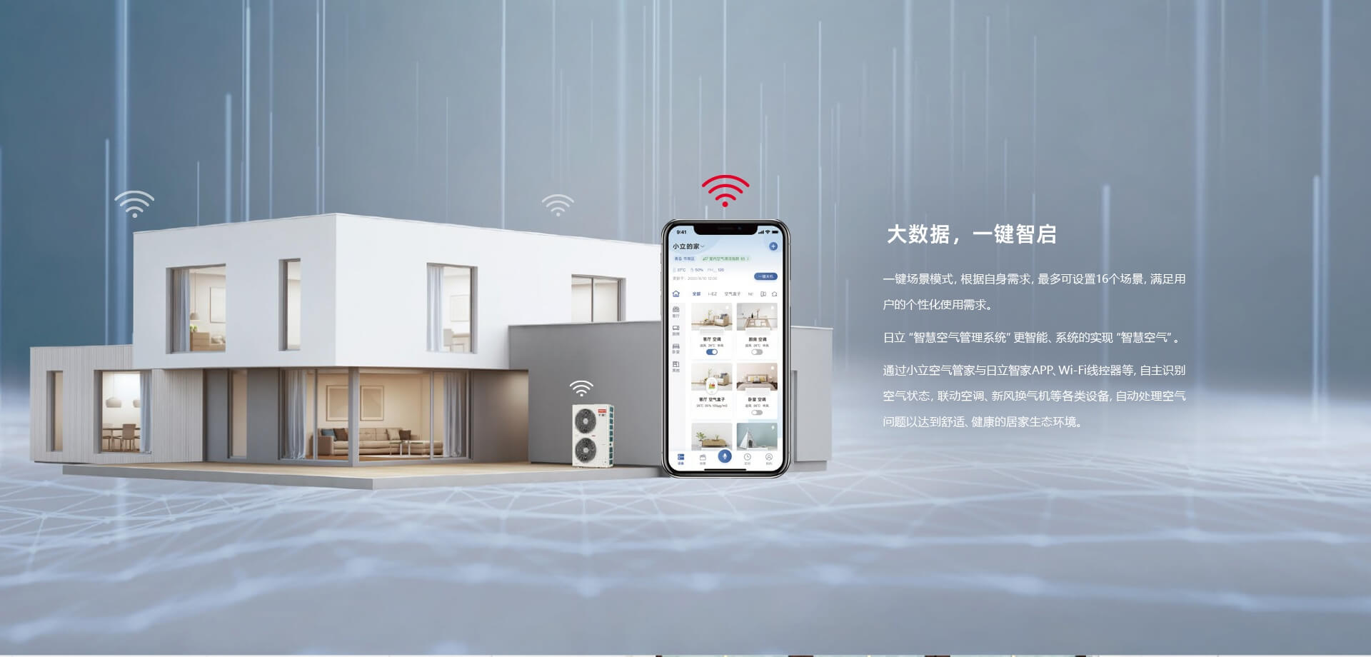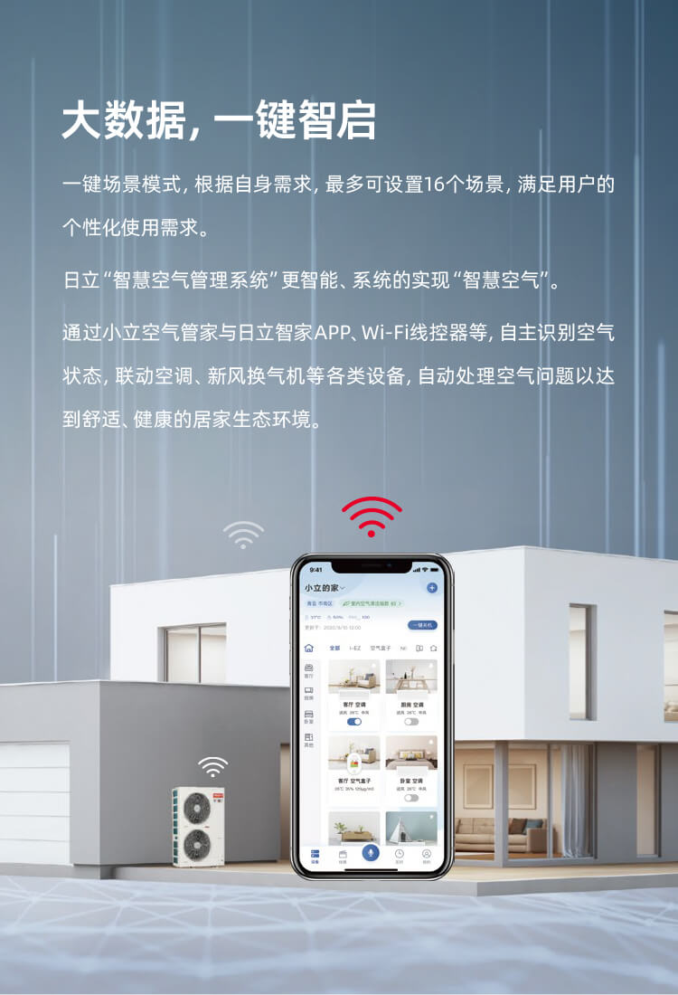 基于日立大數(shù)據(jù)模型AI技術(shù),一鍵即可自動調(diào)節(jié)房間的溫度、濕度、新風(fēng),讓機(jī)組處于最佳運行狀態(tài),節(jié)能提升8%以上。