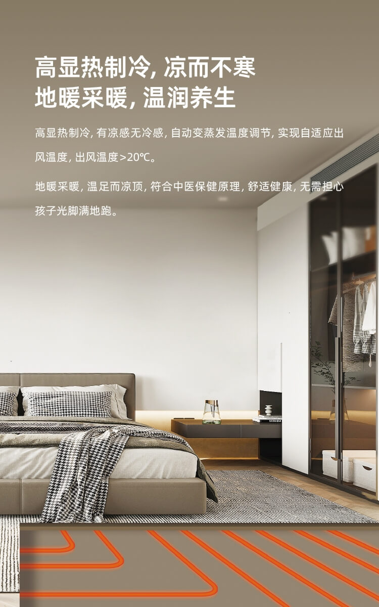 室內(nèi)機(jī)和地暖二合一控制,操作更簡單;地板干燥功能,舒適更便捷