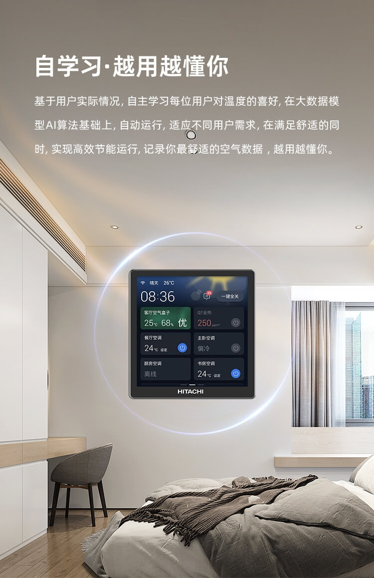日立智慧屏進(jìn)一步升級(jí),可實(shí)現(xiàn)空調(diào)、地暖、新風(fēng)、除濕、加濕系統(tǒng)一體化控制,也可獨(dú)立操控,高效便捷。系統(tǒng)間的聯(lián)動(dòng)控制可實(shí)現(xiàn)自動(dòng)化空氣管理,AI級(jí)智能調(diào)節(jié),復(fù)雜系統(tǒng)簡單設(shè)定,一鍵運(yùn)行,使用無憂。