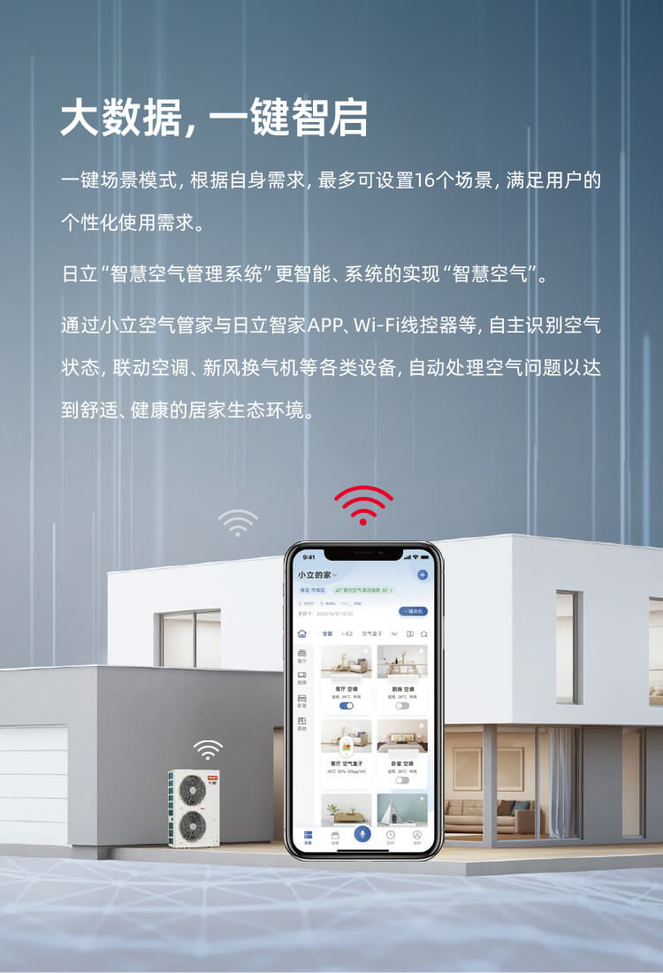 基于日立大數(shù)據(jù)模型AI技術(shù),一鍵即可自動(dòng)調(diào)節(jié)房間的溫度、濕度、新風(fēng),讓機(jī)組處于最佳運(yùn)行狀態(tài),節(jié)能提升8%以上。