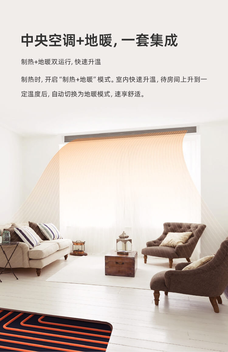 室內(nèi)機(jī)和地暖二合一控制,操作更簡(jiǎn)單;地板干燥功能,舒適更便捷