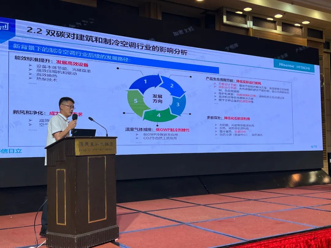 綠色節(jié)能,盡顯擔當。此次青島海信日立空調系統(tǒng)有限公司(以下簡稱“海信日立”)作為承辦單位參會。海信日立開發(fā)中心產(chǎn)品開發(fā)部副總經(jīng)理寧明輝以《中央空調行業(yè)產(chǎn)品技術發(fā)展探索》作為主題,深入淺出地分享了海信日立的綠色探索之路。