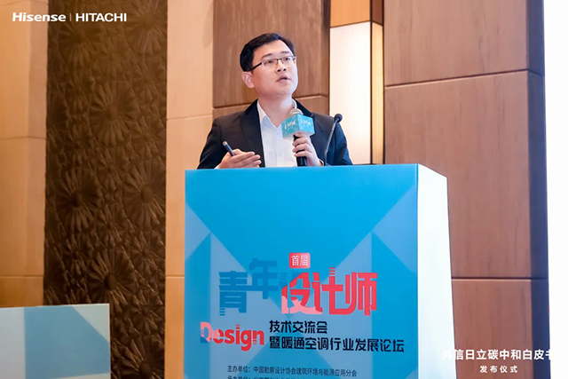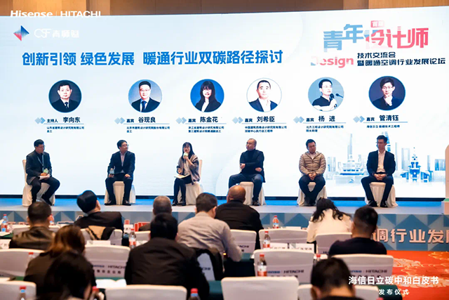 “創(chuàng)新引領(lǐng)、綠色發(fā)展,暖通行業(yè)雙碳路徑探討”論壇環(huán)節(jié),山東省建筑設(shè)計(jì)研究院有限公司總工 李向東為主持人,北京市建筑設(shè)計(jì)研究院股份有限公司總工 谷現(xiàn)良,浙江省建筑設(shè)計(jì)研究有限公司第三建筑設(shè)計(jì)院暖通副總工 陳金花,中國建筑西南設(shè)計(jì)研究院有限公司雙碳中心執(zhí)行總工程師 劉希臣,北方工程設(shè)計(jì)研究院有限公司院長助理 楊進(jìn),以及海信日立能碳技術(shù)工程師 管清鈺作為論壇嘉賓,聚焦行業(yè)節(jié)能降碳切入點(diǎn)、科技創(chuàng)新發(fā)力點(diǎn)、綠色供應(yīng)鏈生態(tài)建設(shè)、綠色產(chǎn)品創(chuàng)新、企業(yè)管理制度等多元維度,結(jié)合《海信日立碳中和白皮書》帶來的啟示,充分碰撞思想火花,共探綠色發(fā)展更多智慧與實(shí)現(xiàn)路徑。